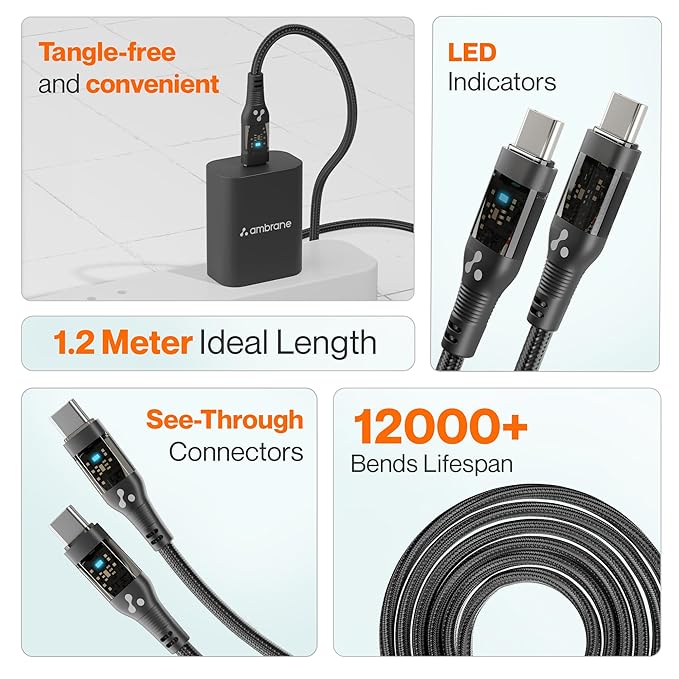 60W Charging: Experience fast and efficient charging with the ABCC-12T, capable of delivering up to 60W of power to your devices. 12000+ Bending Lifecycle: Built to last, this cable boasts a bending lifecycle of over 12000 cycles, ensuring long-term durability and reliability. 3A Fast Charging Speed: Enjoy rapid charging with a 3A fast charging speed, allowing you to power up your devices quickly and efficiently. Power Delivery Technology: Equipped with Power Delivery (PD) technology, the ABCC-12T optimizes power output for safe and efficient charging.