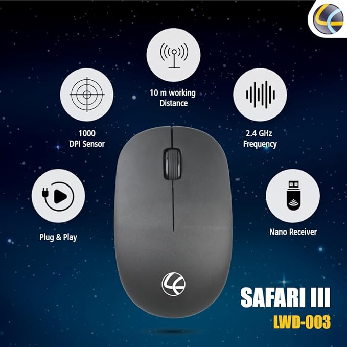 2.4 GhZ wireless 1000 DPI Optical Sensor Light Weight & Ergonomic Design Plug and Play